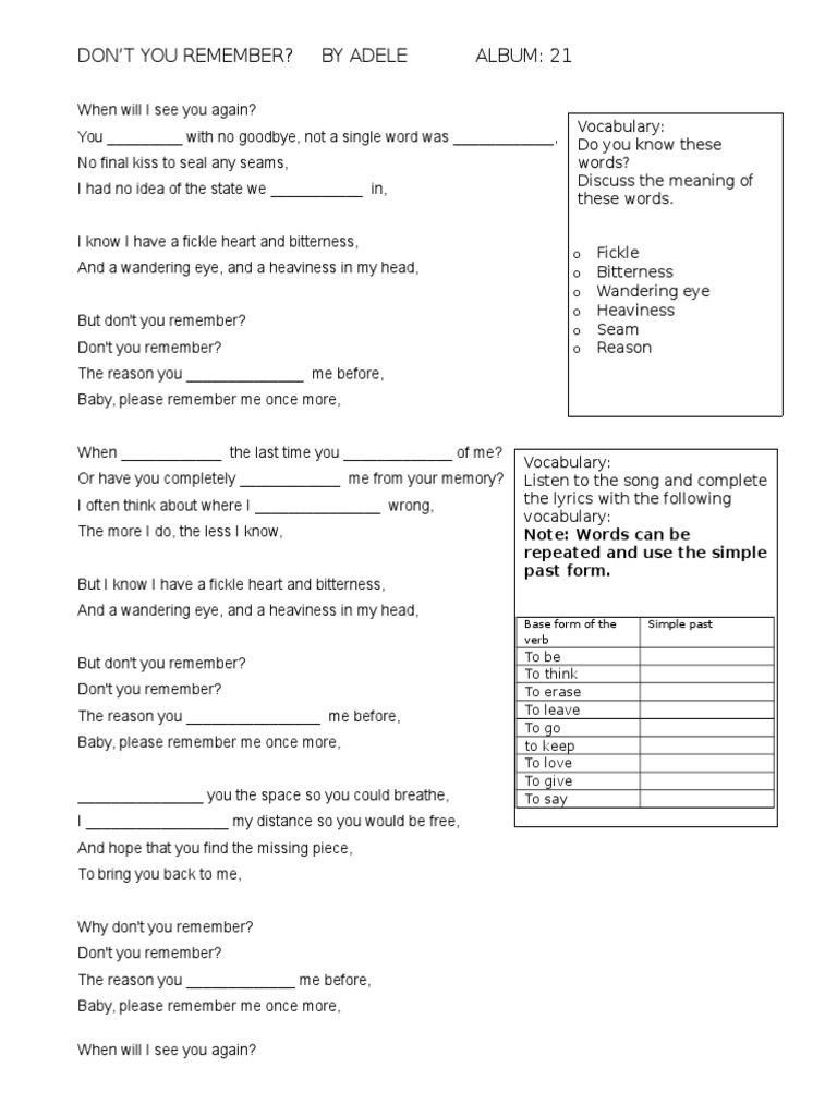 Adele Don T You Remember Simple Past Vocabulary