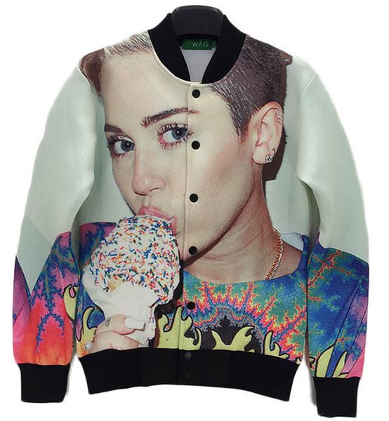 Wholesale Alisister 2014 Sexy Miley Cyrus Jackets Winter Long Jackets Women Outwear Clothing 3d Character Sweatshirt Harajuku Varsity Coat Jackets For